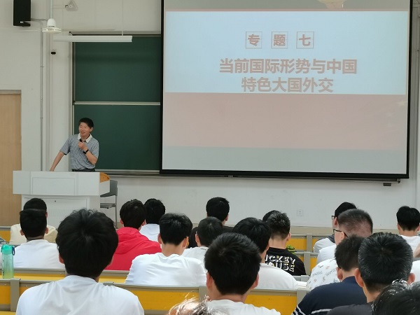 5月27日上午,副校长孟祥瑞在明理303为国产精品 2019级采矿工程3个班80余名本科生讲授了题为《当前国际形势与中国特色大国外交》的形势与政策课。
