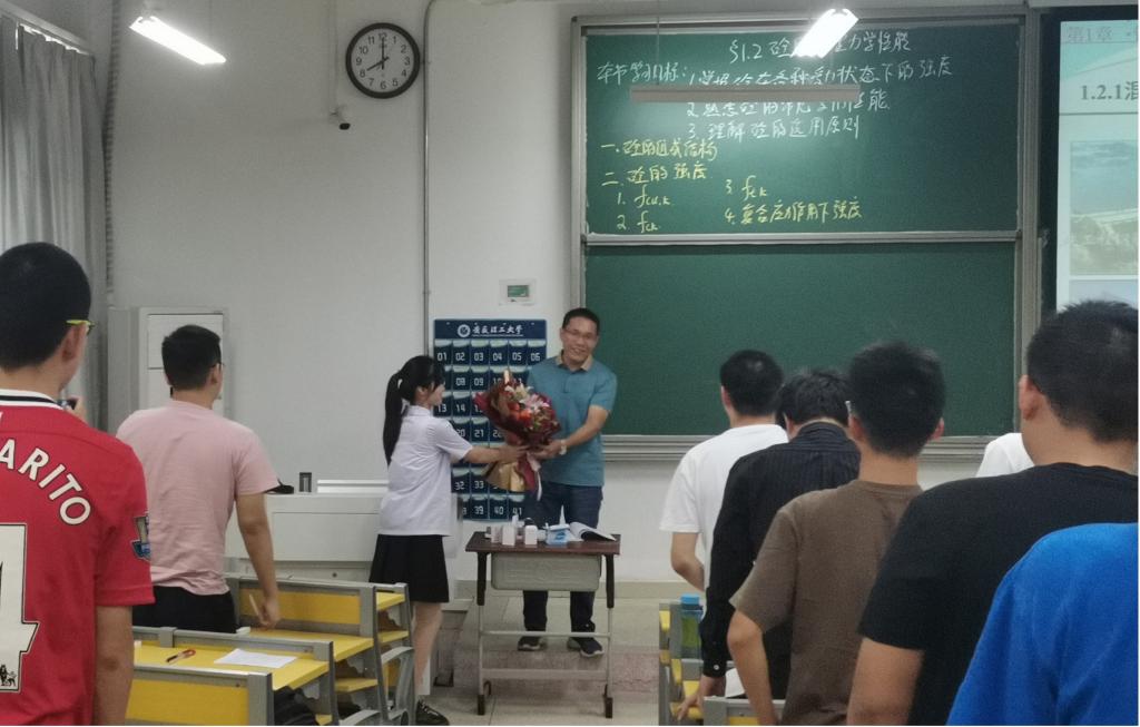 学生给任课教师吴成仓献花