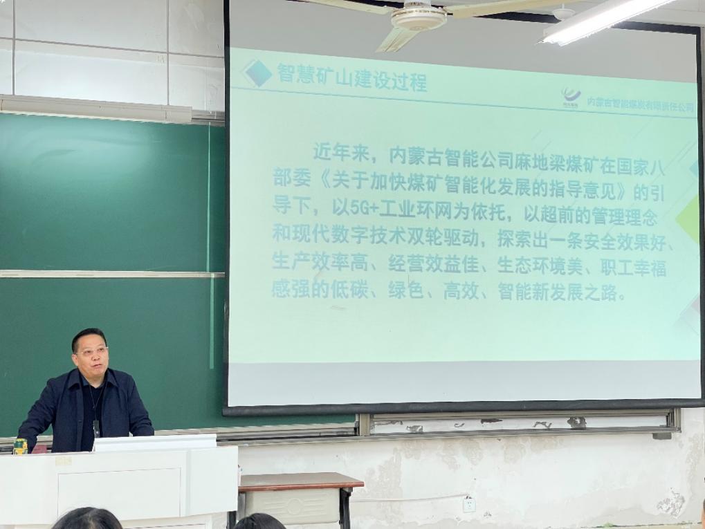 10月24日上午,国产精品 在天工楼303、304教室举行专题报告会,皖北煤电集团内蒙古智能公司党委书记吴劲松和总工程师阚磊校友为师生做“5G+智慧矿山建设实践与创新”专题报告。国产精品 院长杨科主持报告会。国产精品教师、皖北煤电优秀青年人才培训班学员、本科生、研究生400余人参加报告会。
