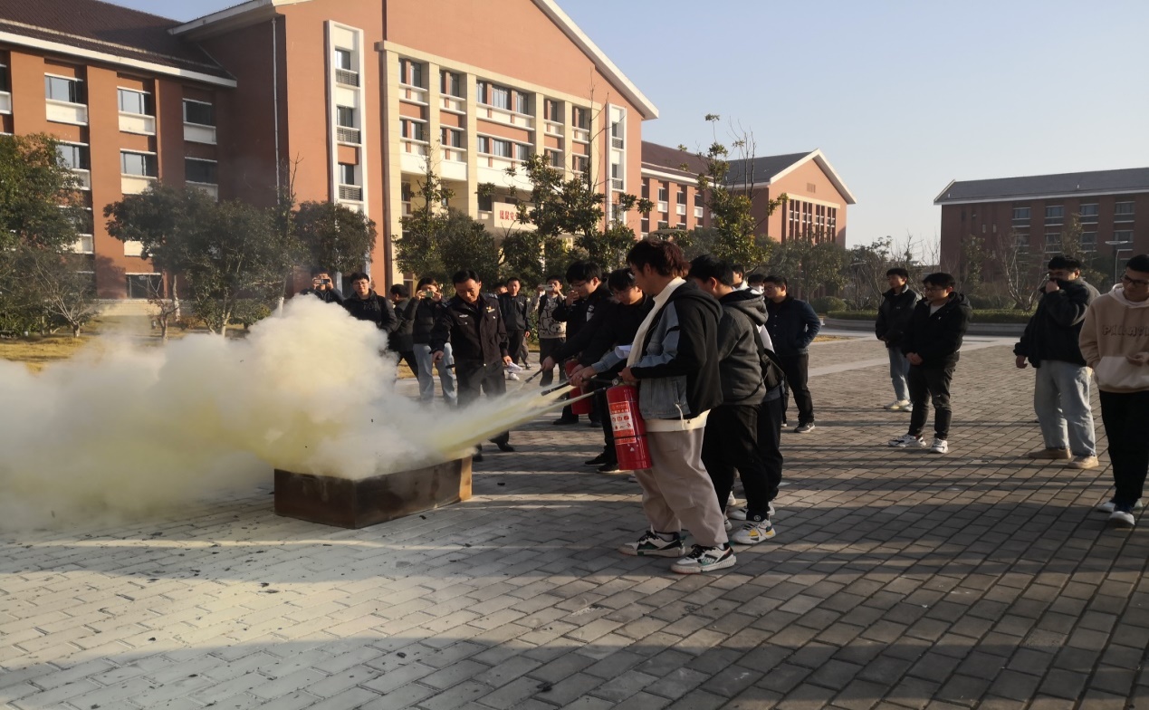培训会后,组织了消防灭火演练,师生运用学到的技能,在险情来临时做到临危不乱,并进行正确的判断和预控,在确保自身安全前提下,正确使用灭火器在火灾初期将火扑灭。