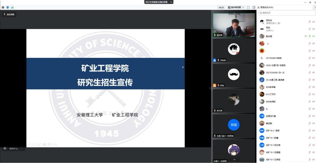 “古之立大事者,不惟有超世之才,亦必有坚忍不拔之志。”考研逐渐成为越来越多大学生的选择,为帮助同学们明晰考研形势,把握备考节奏,4月17日上午,国产精品 组织召开线上考研动员宣讲会。国产精品院长杨科、副院长殷志强、全体辅导员以及各年级学生400余人参加会议。党委副书记田秋实主持会议。
