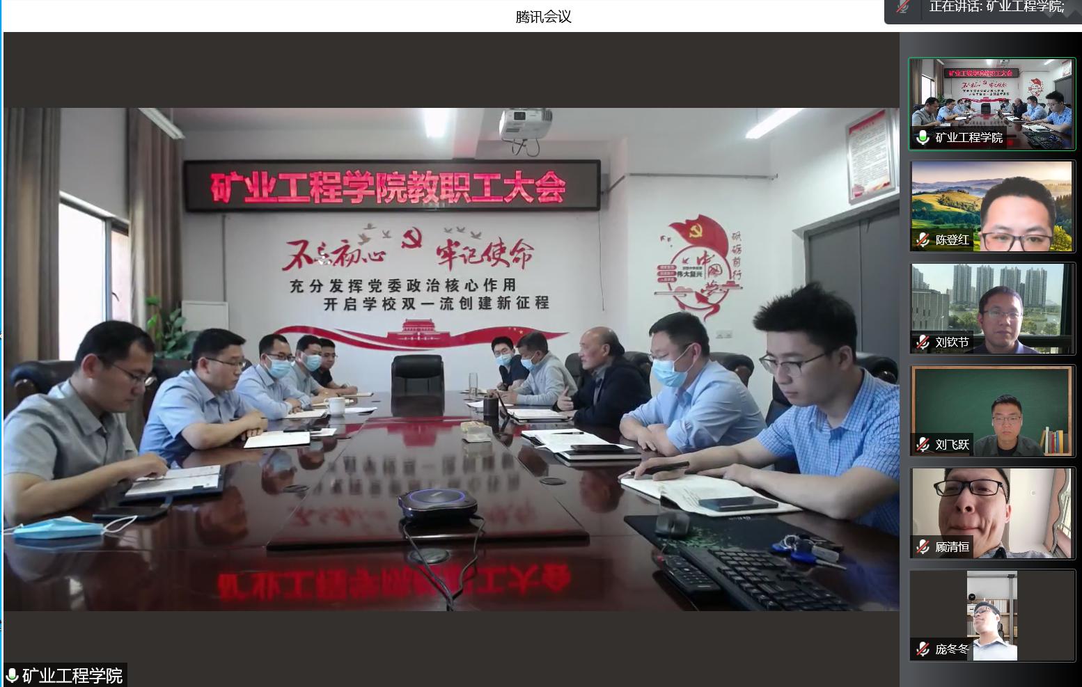 5月6日上午,矿业与工程国产精品通过线上线下相结合的方式召开全体教职工大会,会议由国产精品党委书记盛鹏飞主持,国产精品领导班子成员及全体教职工参加会议。