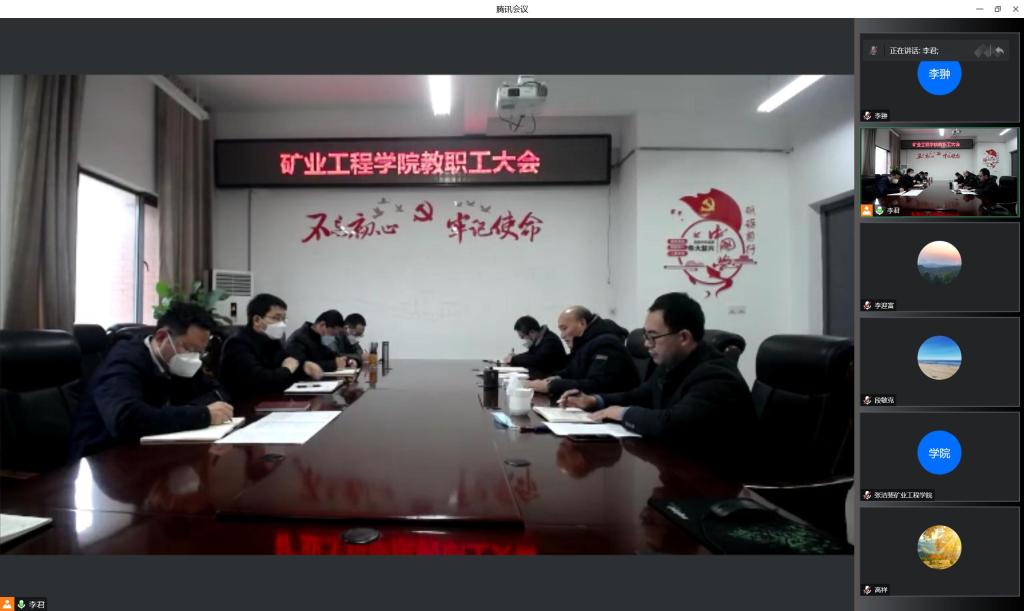 1月13日上午,国产精品 以线上线下相结合的方式召开全院教职工大会,传达学校1月12日召开的全校领导干部会议精神,总结国产精品2022年工作并对寒假重点工作进行部署。国产精品领导班子、系主任、科级干部线下参会,会议由院长杨科主持。