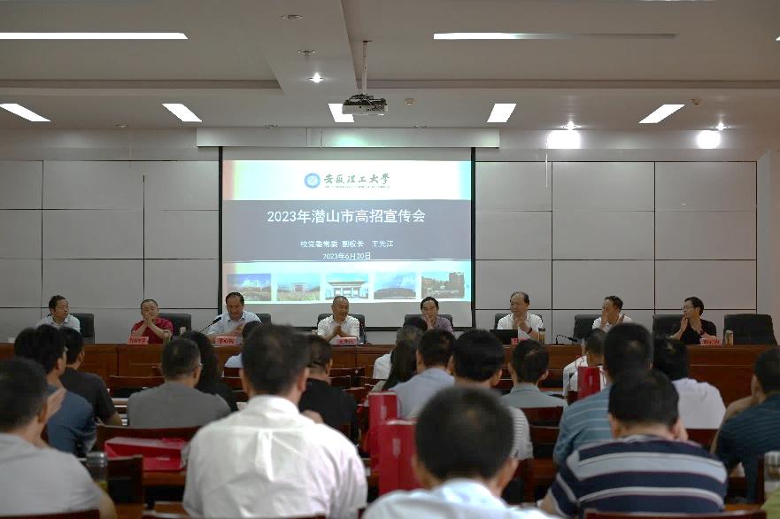 为进一步加强与优质生源基地的沟通交流,展示学校办学成就,持续扩大我校在中学师生中的知名度和影响力,吸引更多优质生源,6月20日,校党委常委、副校长王先江一行赴潜山市开展本科招生宣传。潜山市教育局党委书记、局长石敬忠,党委委员、招生考试中心主任储成杰,4所省示范高中(优质生源基地)校领导、高三年级组长、班主任参加相关活动。