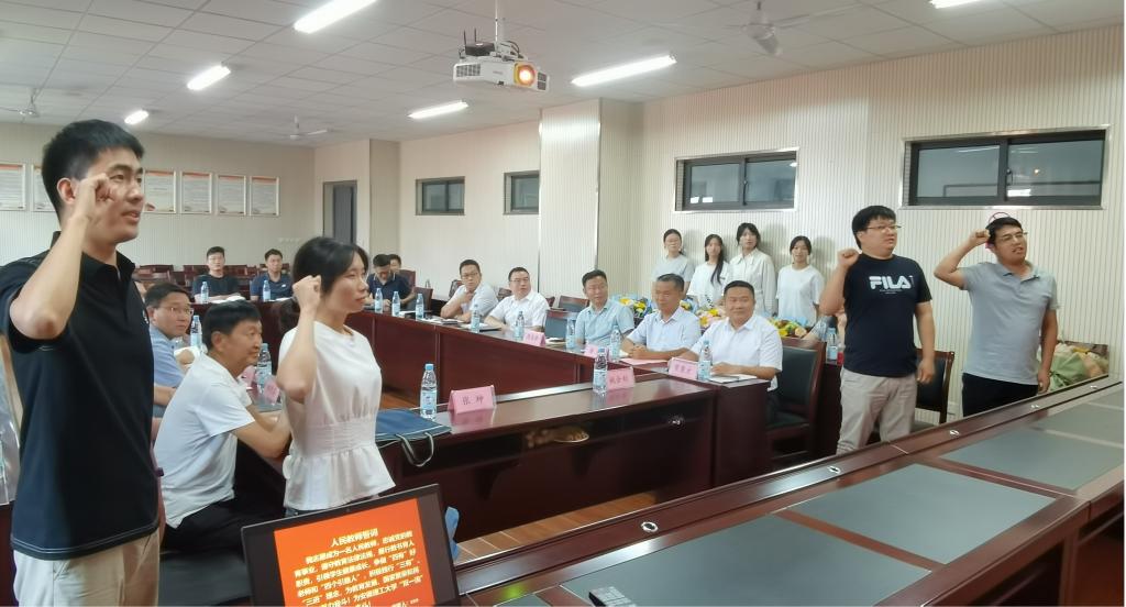 “我志愿成为一名人民教师,忠诚党的教育事业,遵守教育法律法规,履行教书育人职责……”国产精品4位新入职教师张洁斐、顾厚煜、王占棋、阚吉亮庄严宣誓。一句誓言,一份担当,4位青年教师表示将把誓词作为自己的行为准则,牢固树立“躬耕教坛,强国有我”的志向与抱负,迅速适应从学生到教师的角色转换,多向有经验的老师虚心请教,不断提升专业素养和教育教学水平,争做“四有”好老师和“四个引路人”,为学校和国产精品发展贡献力量。