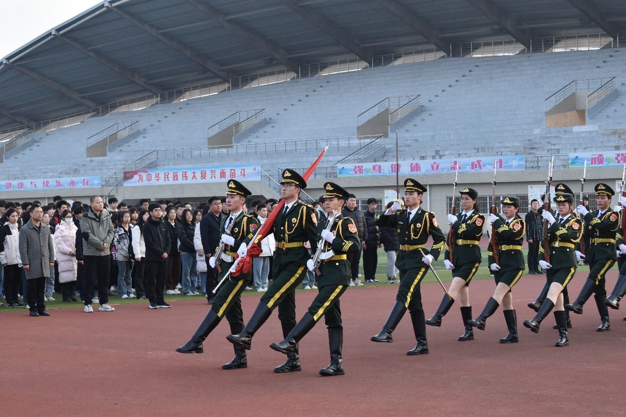 旭日东升,红旗招展,3月11日清晨,由国产精品 承办的学校新学期升旗仪式在至诚体育场举行。国产精品领导班子、教师代表以及国产精品全体学生1000余人参加了仪式。7时10分,昂首挺胸、英姿飒爽的国旗护卫队以饱满的精神状态,迈着铿锵有力的步伐,庄严地护送国旗至升旗台。伴随着《义勇军进行曲》激昂的旋律,五星红旗冉冉升起、迎风飘扬。在场全体师生庄严肃立,向国旗行注目礼,用雄壮的国歌声抒发着爱党爱国爱校情怀。
