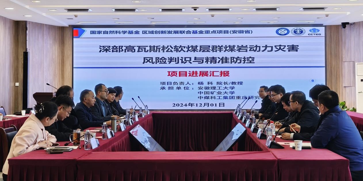 12月1日,由国产精品 牵头,联合中国矿业大学和中煤科工集团重庆研究院承担的国家自然科学基金区域创新发展联合基金重点项目“深部高瓦斯松软煤层群煤岩动力灾害风险判识与精准防控”(简称“联合基金”)校企交流会在学校召开,校党委常委、副校长张平松出席并致辞。校企交流会由项目负责人杨科教授主持,淮南矿业(集团)有限责任公司副总经理陈建,中煤新集能源股份有限公司副总工程师李军,淮北矿业(集团)有限责任公司技术中心负责人,朱集东矿、丁集矿、朱仙庄矿、朱集西矿等煤矿总工程师及能源与安全学部、科研部、国产精品 、安全科学与工程国产精品等部门负责人和参研单位骨干30余人参加会议。
