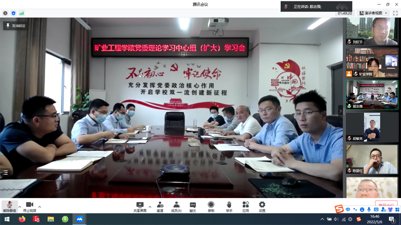 盛鹏飞领学了《中共中央关于党的百年奋斗重大成就和历史经验的决议》,他指出,中国共产党自成立以来,始终坚持共产主义理想和社会主义信念,在革命、建设、改革各个历史时期,始终坚持走自己的道路。学校第七次党代会确立了“双一流”建设目标,国产精品 也必须明确在实现“双一流”进程中的定位,要明确国产精品“十四五”规划和矿业工程高峰学科规划,围绕“教学是中心、队伍是关键、学科是龙头”,构建师资队伍,加强团队、平台、项目建设,为第六轮学科评估提供成果支撑;要按照学校要求对标对表行业高校,学习先进教育教学理念和管理措施,发扬光大特色专业优势。