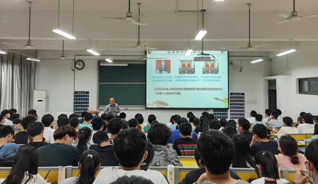开班典礼结束后,盛鹏飞以《党的十九届六中全会精神学习宣讲》为题作开班第一讲。他从充分肯定党的十九届五中全会以来中央政治局的工作、总结党的百年奋斗重大成就和历史经验的必要性等方面介绍了十九届六中全会的基本情况和核心内容。征途漫漫,惟有奋斗,通过鲜活的事例、生动的表述,他带领学员们回顾了一代代共产党人前赴后继、浴血奋战的百年奋斗历程,阐释了中国共产党在历史逻辑上对马克思主义的继承与发展,让学员们切身体会到红色政权的来之不易、新中国的来之不易、中国特色社会主义的来之不易。不忘初心,方得始终,党团结带领中国人民又踏上了第二个百年奋斗目标新的赶考之路,他从党中央对全体党员的号召阐明了党的十九届六中全会的重要意义和重大价值。他要求,全体学员要坚定马克思主义信仰,树立为共产主义和中国特色社会主义事业奋斗终身的坚定信念,牢记入党初心使命,勇于担当作为。