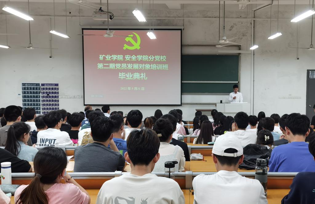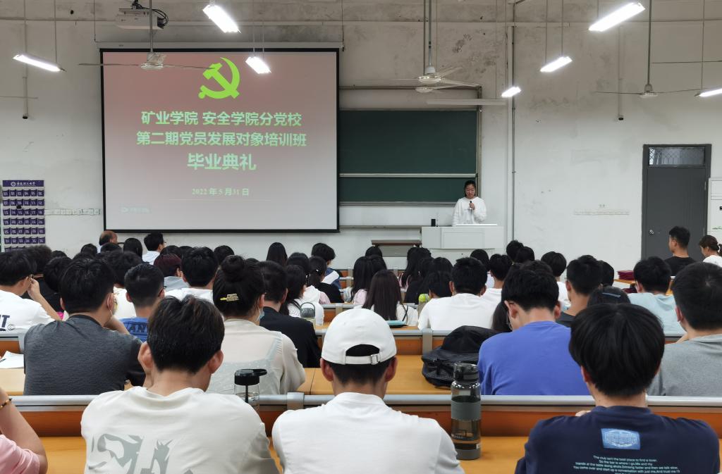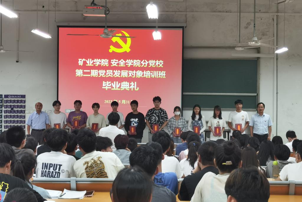 5月31日晚,国产精品 、安全科学与工程国产精品分党校第二期党员发展对象培训班各项任务圆满完成,在天工105教室举办了结业典礼。矿业工国产精品党委书记盛鹏飞、安全科学与工程国产精品党委书记金德出席结业典礼,典礼由安全科学与工程国产精品党委副书记曹宣明主持,两国产精品辅导员及150名学员参加结业仪式。