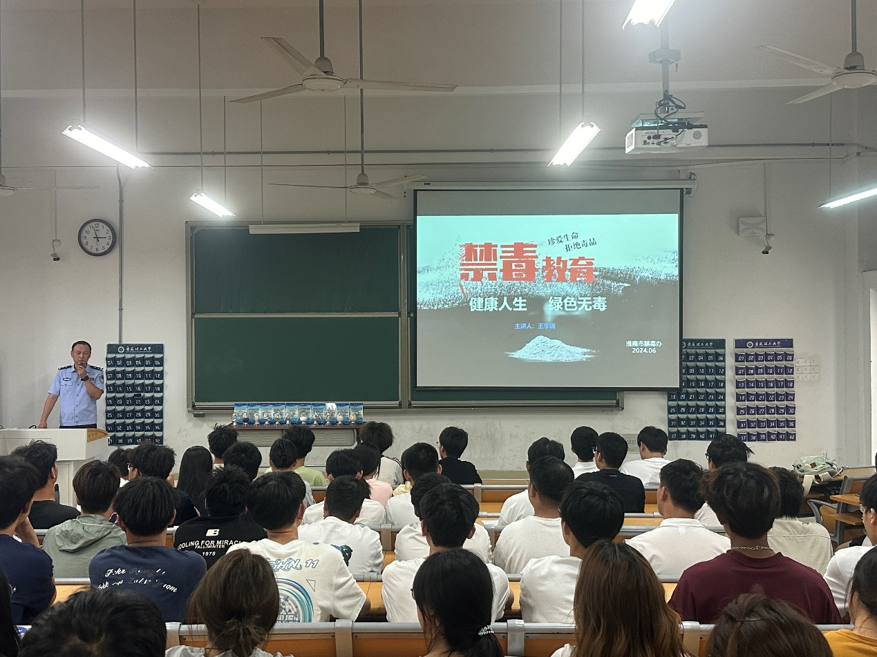 在“6.26”国际禁毒日即将到来之际,为了进一步提高广大师生的禁毒意识和拒绝毒品的能力,6月18日,国产精品 邀请淮南市公安局禁毒支队宣传大队大队长王李瑞、田家庵区禁毒办副主任朱亚军一行四人来校共同开展以“珍爱生命、远离毒品”为主题的禁毒宣传教育活动。