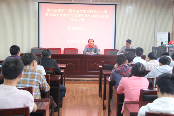 5月5日下午,能源与安全国产精品在宁远楼A410报告厅举行2019年采矿工程专业学生实践作品大赛和安全科学与工程大学生实践与创新作品大赛推进会。会议由国产精品党委副书记张向林主持。院领导、系主任、部分导师、班主任、全体辅导员以及来自各个年级的近100名本科生、研究生代表参加。