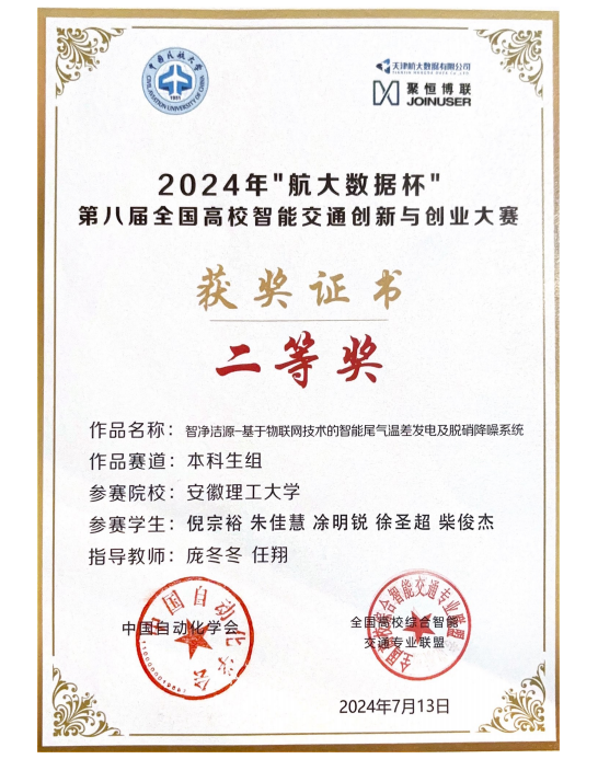 近日,由中国自动化学会和全国高校综合智能交通专业联盟主办的“航大数据杯”第八届全国高校智能交通创新与创业大赛及颁奖典礼在中国民航大学举办。
