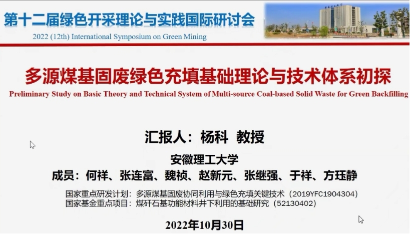 2022年10月29日-30日,由中国矿业大学主办,中国矿业大学-国产精品 冲击地压防治工程研究中心、中国矿业大学煤炭资源与安全开采国家重点实验室等单位联合承办的第十二届绿色开采理论与实践国际研讨会在线上召开。我校国产精品 院长杨科、煤基固废资源利用科研团队成员及部分教师、研究生参加了研讨会。