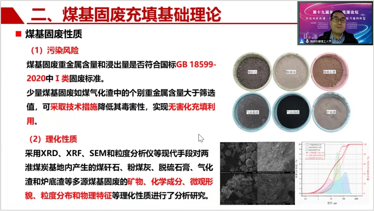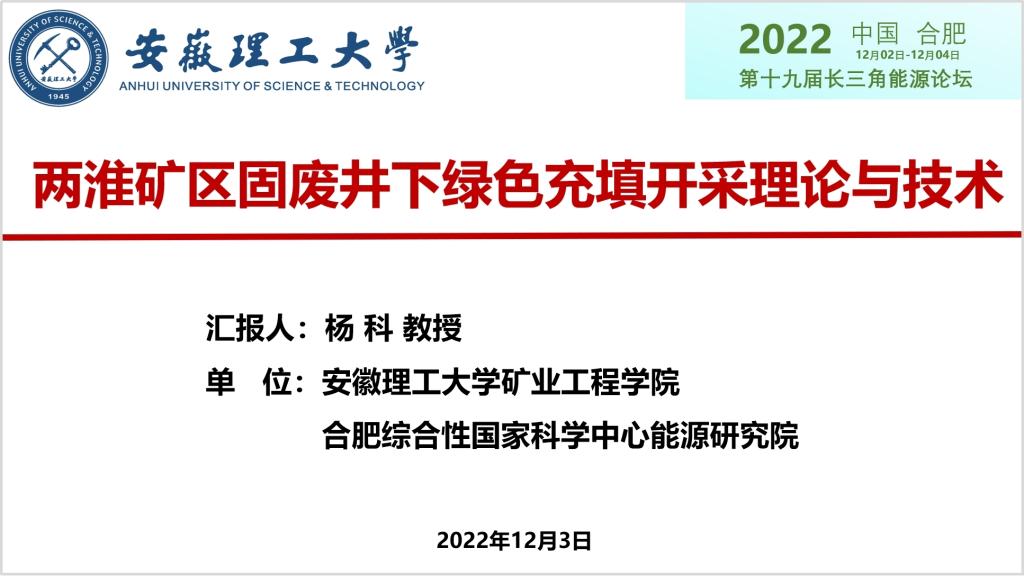 会上,杨科教授作了题为“两淮矿区固废井下绿色充填开采理论与技术”的主题报告。报告报告提出了安全、经济、技术、政策等20个指标的绿色充填开采可行性评价体系,发展原位充填、低位充填、高位充填的技术集成模式,形成“三层位”空间立体式充填方法。相关研究内容得到合肥综合性国家科学中心能源研究院(安徽省能源实验室)项目“煤基固废无害化利用与绿色开采基础研究”、国家重点研发计划项目课题“多源煤基固废协同利用与绿色充填关键技术”、国家基金重点项目“煤矸石基功能材料井下利用的基础研究”等资助。研究成果已在山西焦煤霍尔辛赫煤业成功应用,得到了山西日报等多家媒体报道()。
