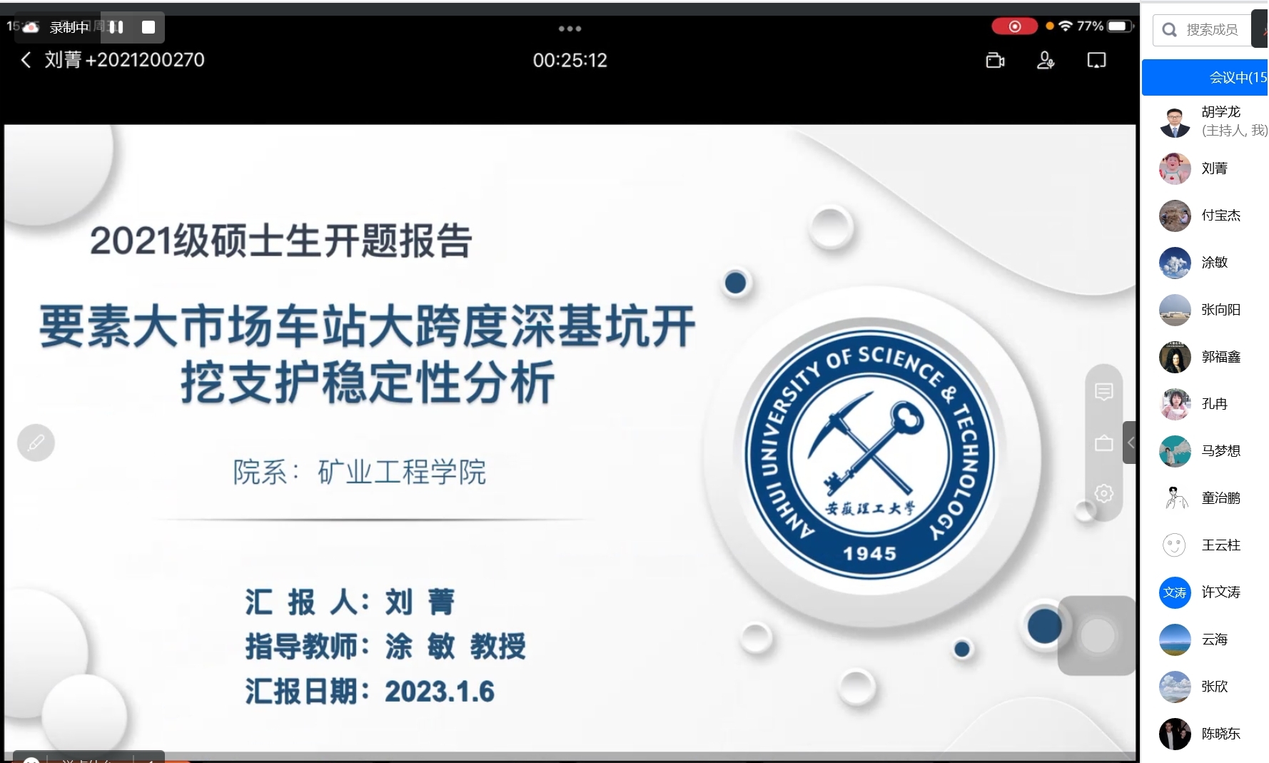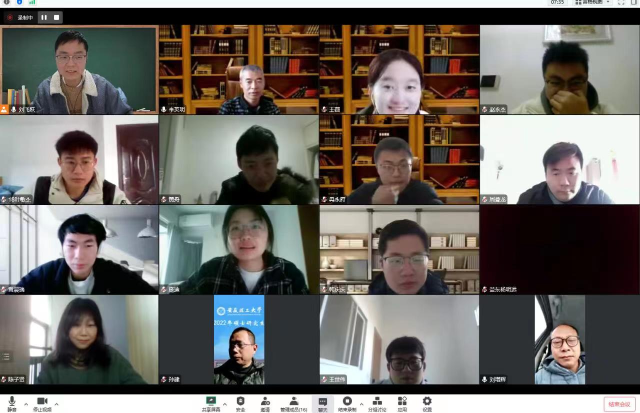 1月2日-6日,国产精品 组织开展2023年首次学术论坛暨2021级硕士研究生开题答辩。受疫情影响,2021级89位硕士研究生按研究方向分八组,采用线上的方式举行开题答辩。开题答辩评审组由国产精品各学科带头人、研究生导师以及青年教师组成。国产精品其他年级研究生进行观摩学习。