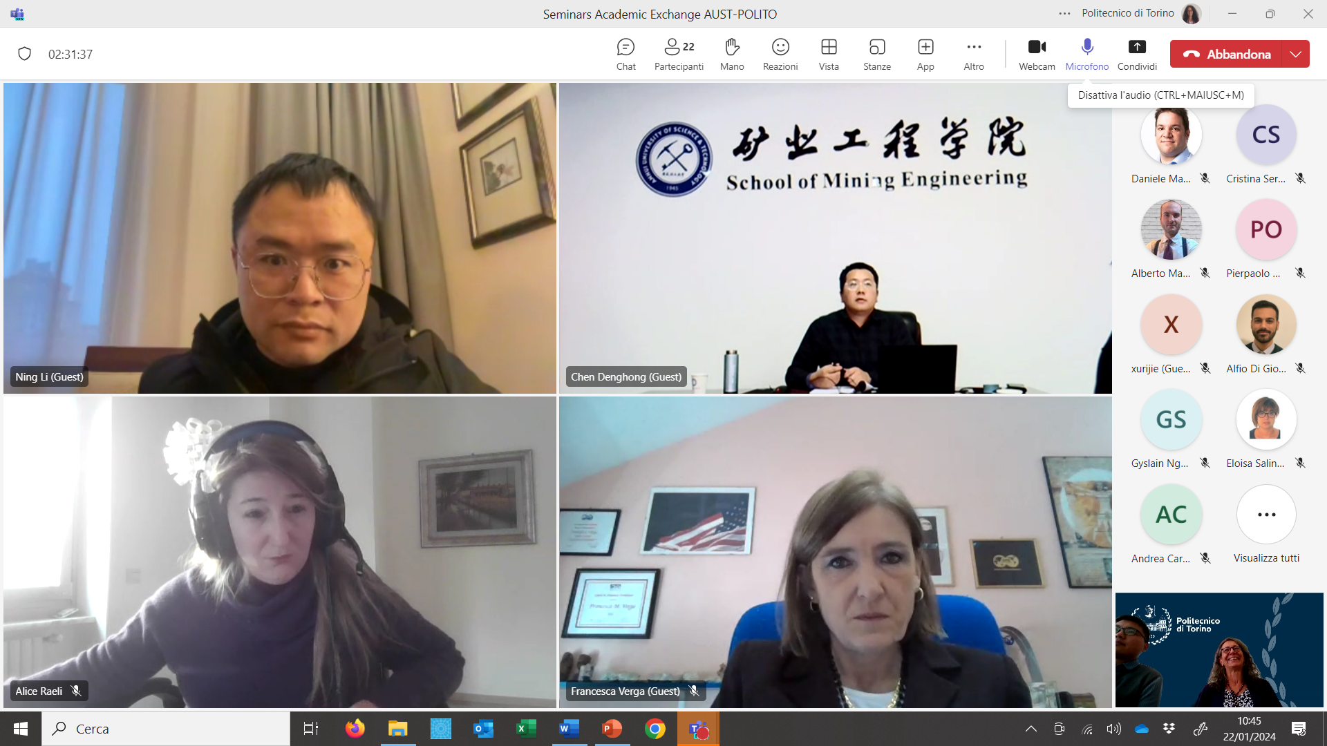 1月22日下午,受意大利都灵理工大学Chiara Deangeli教授邀请,国产精品 陈登红教授与李宁副教授与意大利都灵理工大学环境、土地与基础设施国产精品开展了学术交流。此次邀请报告采用“线上+线下”相结合的方式进行,都灵理工大学与我校60余名教师和学生代表参会。