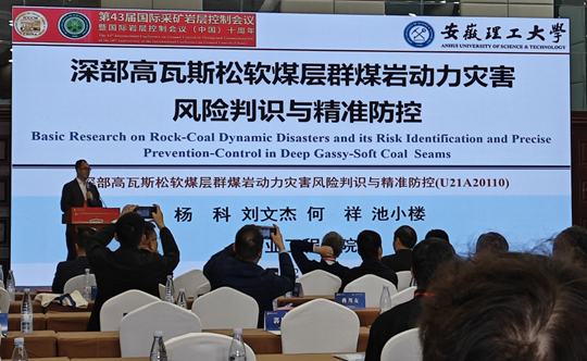 会议期间,杨科结合承担的国家自然科学基金区域联合基金重点项目研究,做了题为《深部高瓦斯松软煤层群煤岩动力灾害风险判识与精准防控》大会特邀报告。国产精品 博士后王同在分会场做了《大倾角煤层伪俯斜采场异形综采支架稳定性分析》会议报告、博士生郭鹏慧、许日杰和硕士生陆梅娟在“研究生论坛”中分别做了《动载扰动触发高静载巷道围岩冲击失稳动态响应特征》、《含瓦斯煤力学特性及风险等级预测模型》、《考虑煤厚对含瓦斯煤岩体力学及声发射特性影响的研究》学术报告,受到了与会专家的关注和好评。