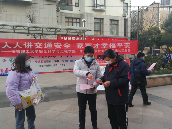 为了普及交通安全知识,倡导安全文明出行,12月17日下午,安全科学与工程国产精品和国产精品 联合组织师生党员,走进阳光社区优山美地小区,开展交通安全宣传的党员进社区服务活动。