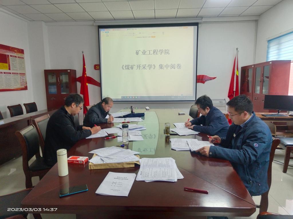 为提高课程建设质量和人才培养效果,加强课程组建设实效,结合专业认证课程目标与毕业要求的相关性,将教学考核标准落到实处,切实提升课堂教学质量。3月2日,国产精品《煤矿开采学》课程组教师在涂敏教授的带领下,在采矿工程系教研活动室开展了《煤矿开采学》专业核心课程试卷集中流水阅卷工作。
