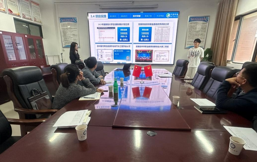 评审采取PPT汇报和答辩的方式进行,团队成员围绕项目背景、主要创新点和项目前景进行汇报,评委根据作品申报书、汇报表现和答辩情况进行评审,对4件参赛作品提出意见建议。